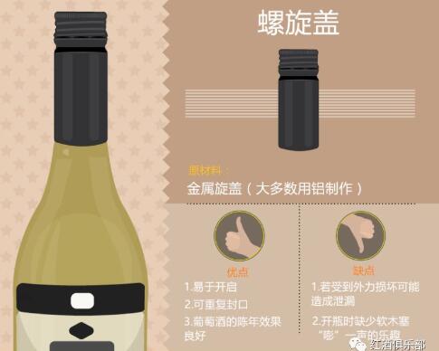 上世紀(jì)70年代,一些酒商深受軟木塞污染的困擾,開始嘗試用螺旋蓋來封瓶。采用螺旋蓋封瓶的葡萄酒無需任何開瓶器便能輕松開啟。這種瓶塞不存在木塞污染,且溫度和濕度的變化幾乎不會(huì)給螺旋蓋帶來任何影響。如果一瓶葡萄酒開瓶后還沒飲用完,只需重新蓋上螺旋蓋即可。另外,使用螺旋蓋封瓶的葡萄酒在存放的時(shí)候不需要水平放置,許多葡萄酒還能在瓶中很好地陳年。