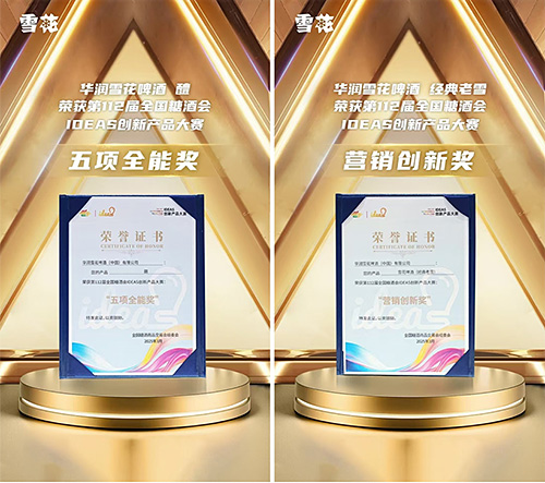3月25日,第112屆全國(guó)糖酒會(huì)IDEAS創(chuàng)新產(chǎn)品大賽舉行頒獎(jiǎng)儀式。本次比賽聚焦“產(chǎn)品創(chuàng)新組、包裝設(shè)計(jì)組、舌尖美味組、營(yíng)養(yǎng)健康組、營(yíng)銷創(chuàng)新組”五大核心賽道。最終,在160余個(gè)品牌、390多款產(chǎn)品的競(jìng)爭(zhēng)中,雪花啤酒(經(jīng)典老雪)憑借其卓越的營(yíng)銷洞察力摘得“營(yíng)銷創(chuàng)新獎(jiǎng)”,而雪花啤酒的超高端產(chǎn)品“醴”,以其綜合實(shí)力斬獲全場(chǎng)最.高榮譽(yù) “五項(xiàng)全能獎(jiǎng)”。